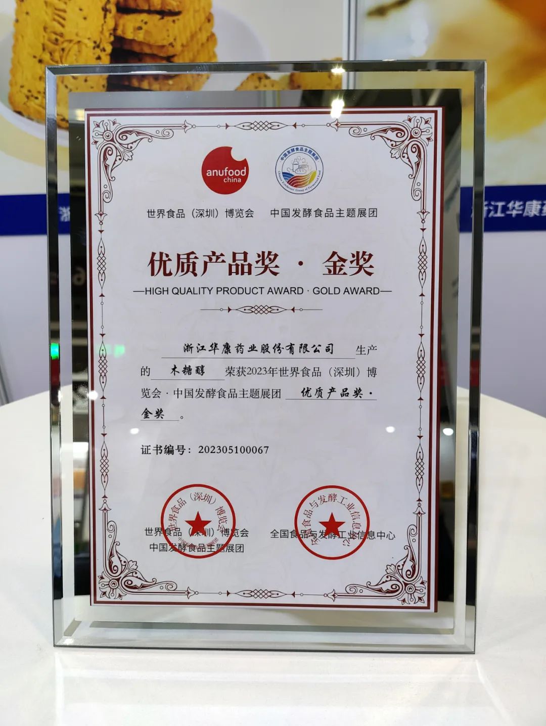 華康木糖醇榮獲2023年世界食品 (深圳)博覽會.中國發(fā)酵食品主題展團優(yōu)質產品金獎