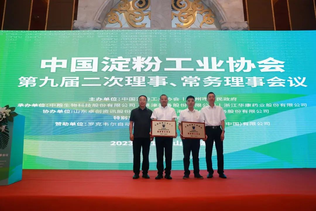 中國淀粉工業(yè)協(xié)會(huì)領(lǐng)導(dǎo)為華康股份頒發(fā)“副理事長單位”牌匾